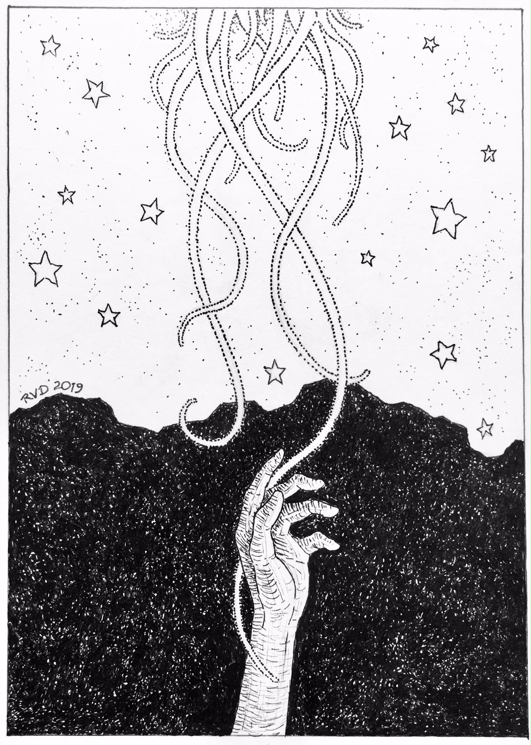 I ruminate over the stars’ words. If down is up and up is down, I figure there’s no wrong decision. I take my familiar tendril in my hand again. No thrill courses through me this time and I move to begin my ascent.