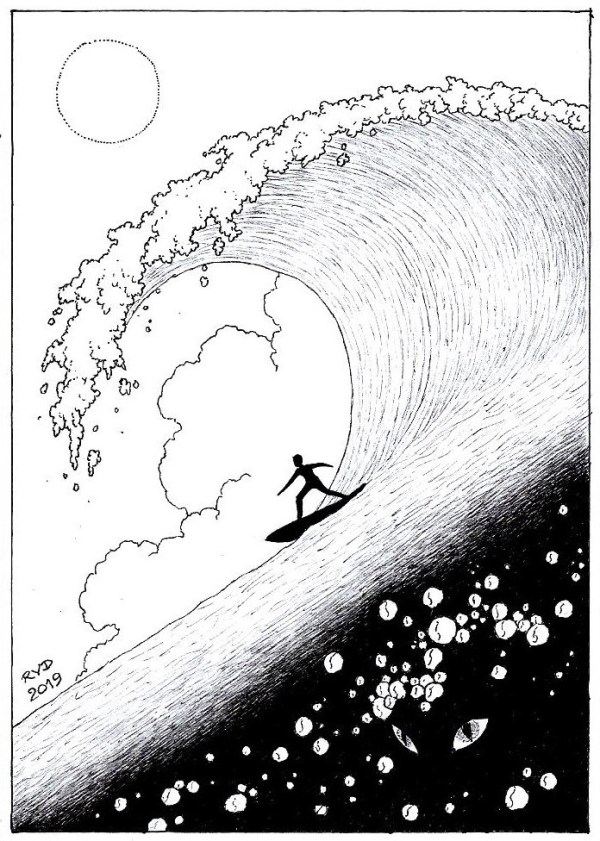 It took me a week of early mornings to determine the mother wave wasn’t six. Not on planet Qu’aean. Fifth world from an otherwise undistinguished F-star. Huntington Beach, Earth, six. Qu’aean surf zone, eight. At least, my empirical evidence indicated every eighth wave was larger. High tide progressed into my afternoon shifts with the delegation, delaying further experimentation.